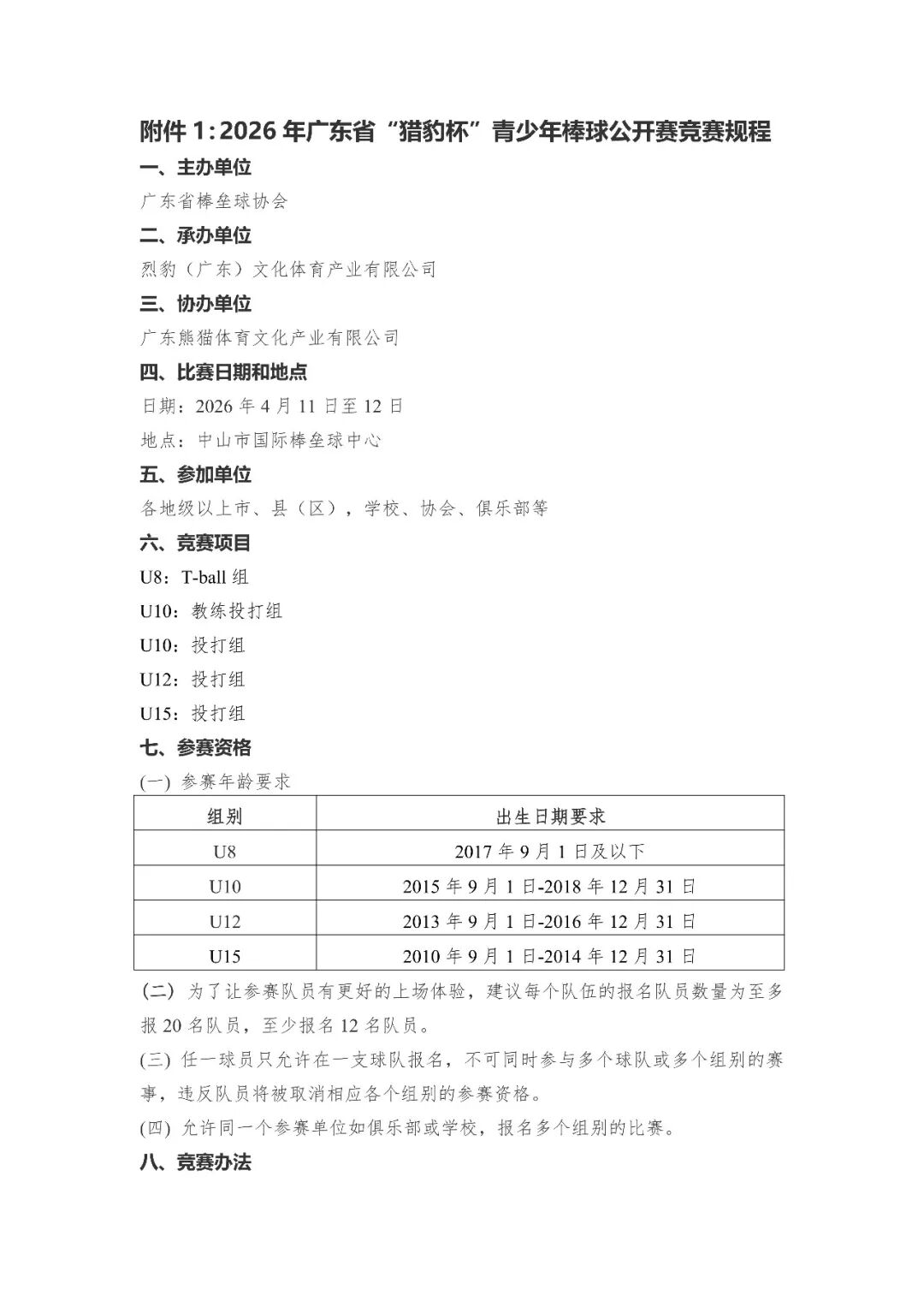 赛事通知 2026-04-05 03:37 关于印发2026年广东省“猎豹杯”青少年棒球公开赛竞赛规程的通知 郭璇郭璇 广东省棒垒球协会 2026-03-17 13:25 广东 原文链接 报名表下载:2026年广东省“猎豹杯”青少年棒球公开赛报名表.xls赛事/青训/裁判/教练/培训/对外交流